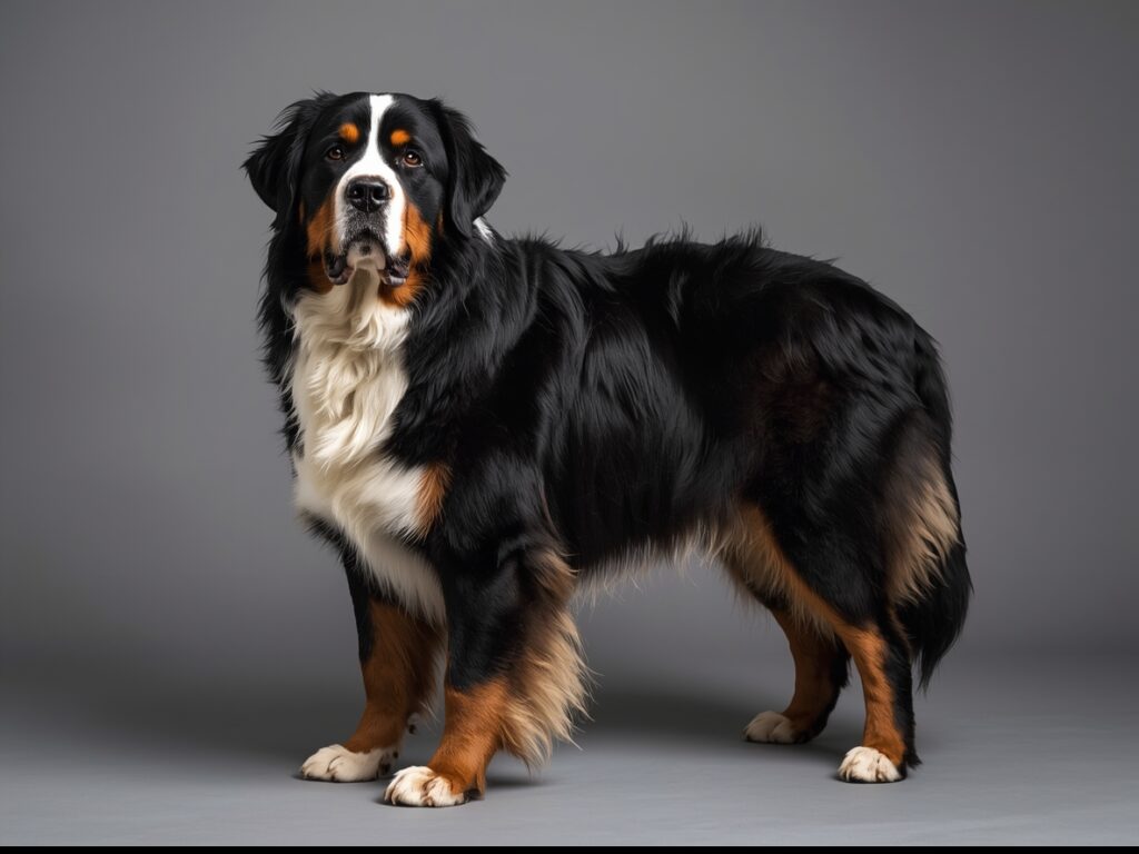 Bernský salašnický pes je majestátní, klidný a přátelský obr, který si snadno získá srdce celé rodiny. Samci měří 64–70 cm a váží 38–50 kg, feny jsou menší s výškou 58–66 cm a hmotností 36–48 kg. Jeho dlouhá, hustá a lesklá srst v typické trikolorní kombinaci černé, bílé a rezavé barvy působí elegantně a vznešeně.